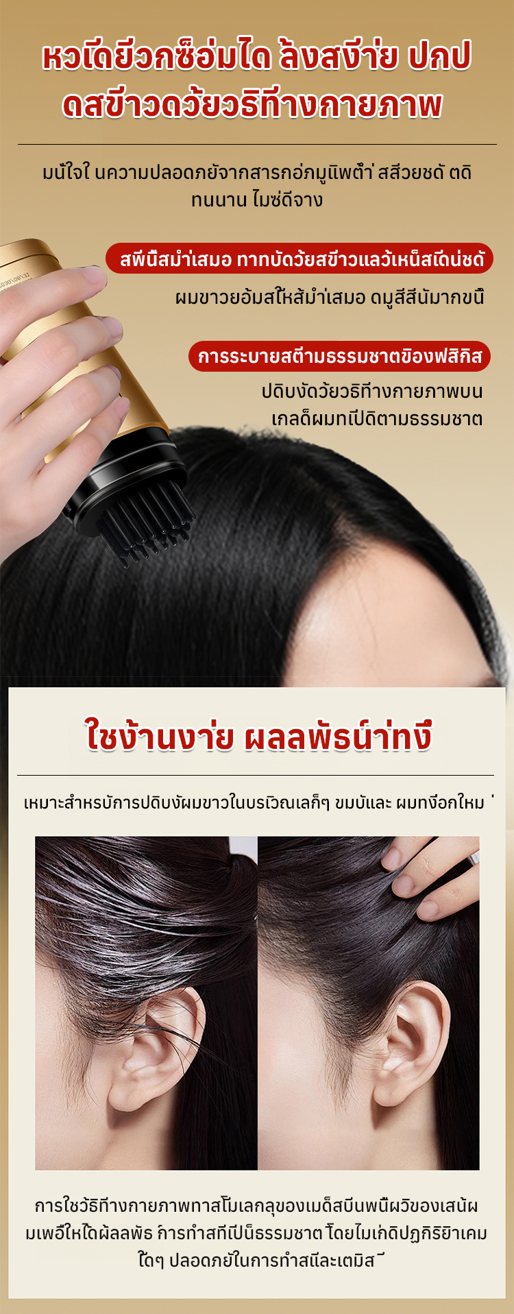 【1 หวีปิดผมขาว】ครีมสมุนไพรปิดผมขาวไม่หลุดลอก
